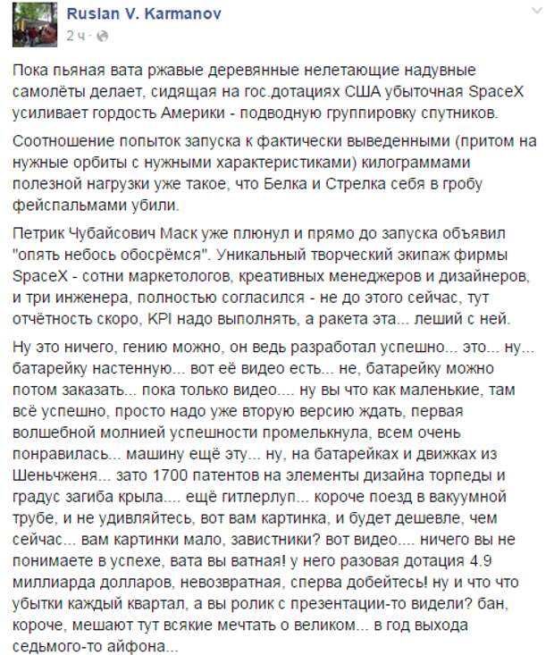 Ну и раз уж у нас шла тут речь о технических достижениях - очередному провалу SpaceX и Falcon 9 посвящается: